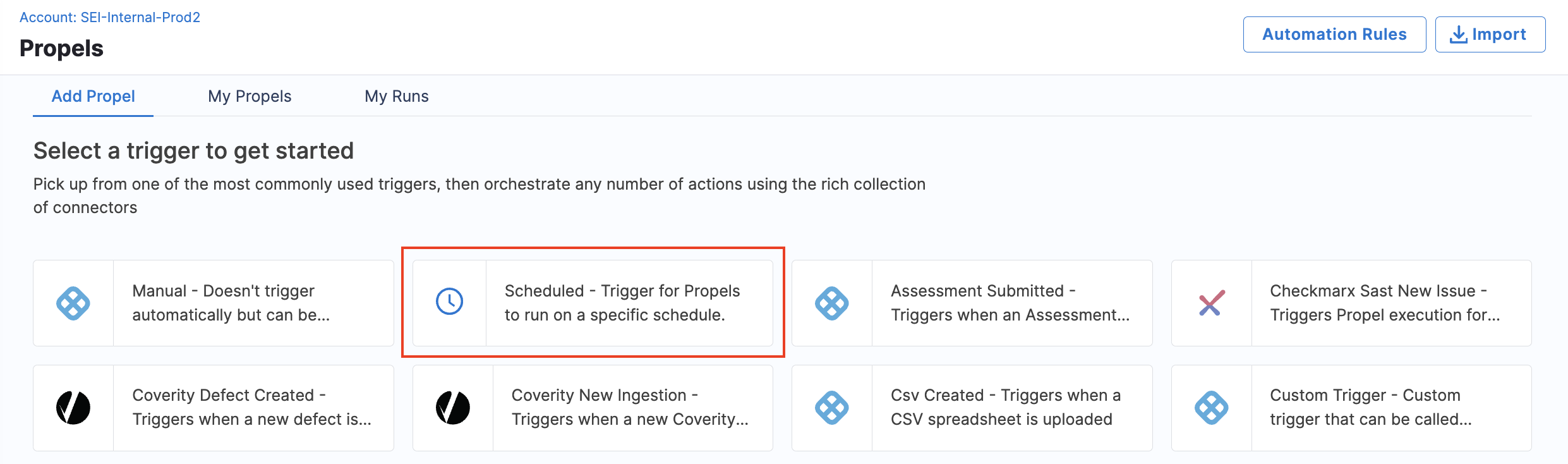 - Select Propels under Advanced Features to create a new workflow automation.